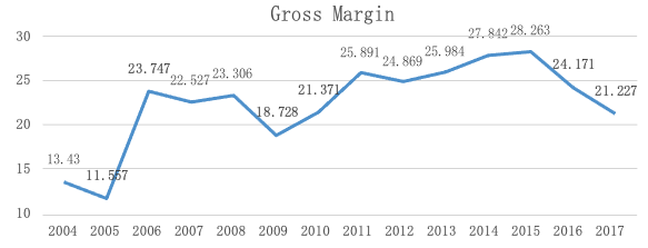 Combining the comparison of the net profit ratio, it can be found that the debt-to-equity ratio in 2013 to 2016 generally decreased, and the net profit ratio also decreased.