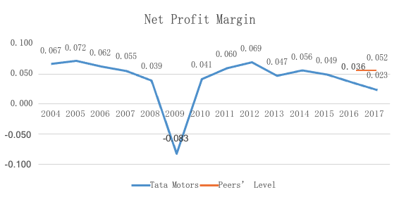 The value of the industry peer level is from the msn financial website.22 Tata Motors’ net profit margin has been lower than its peers since 2015, and gross margins have continued to decline. It shows that the profitability of Tata Motors is not as good as before.