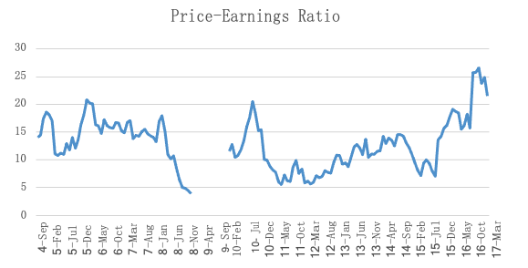 However, the figure below shows that the price-to-book ratio in 2017 is higher than that in 2016, indicating that the stock price in 2017 is higher than that in 2016, and combined with the decline in the price-to-earnings ratio, it can be inferred that the company’s current EPS has increased significantly.